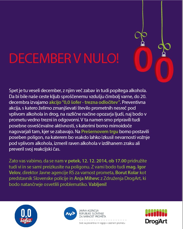 Preventivni dogodek bo potekal v petek, 12. decembra 2014, na Prešernovem trgu v središču Ljubljane.