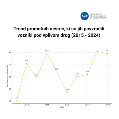 V lanskem letu so povzročitelji pod vplivom drog povzročili 79 prometnih nesreč (kar je 7,6 % vseh nesreč), v kombinaciji alkohola in drog pa 64 nesreč, leta 2023 pa 81 oziroma 48 prometnih nesreč. Povzročitelji pod vplivom drog so bili v obeh letih krivi za več kot 10 % prometnih nesreč z umrlimi udeleženci!