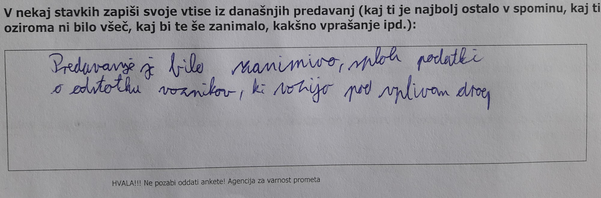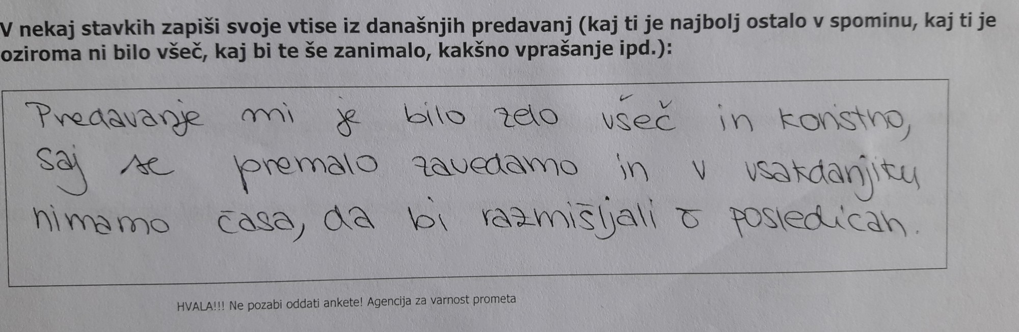 Delavnice Vozimo pametno običajno potekajo za dijake 2. in 3. letnikov srednjih šol, tokrat pa so se jih udeležili dijaki 4. letnikov Gimnazije Šentvid.
