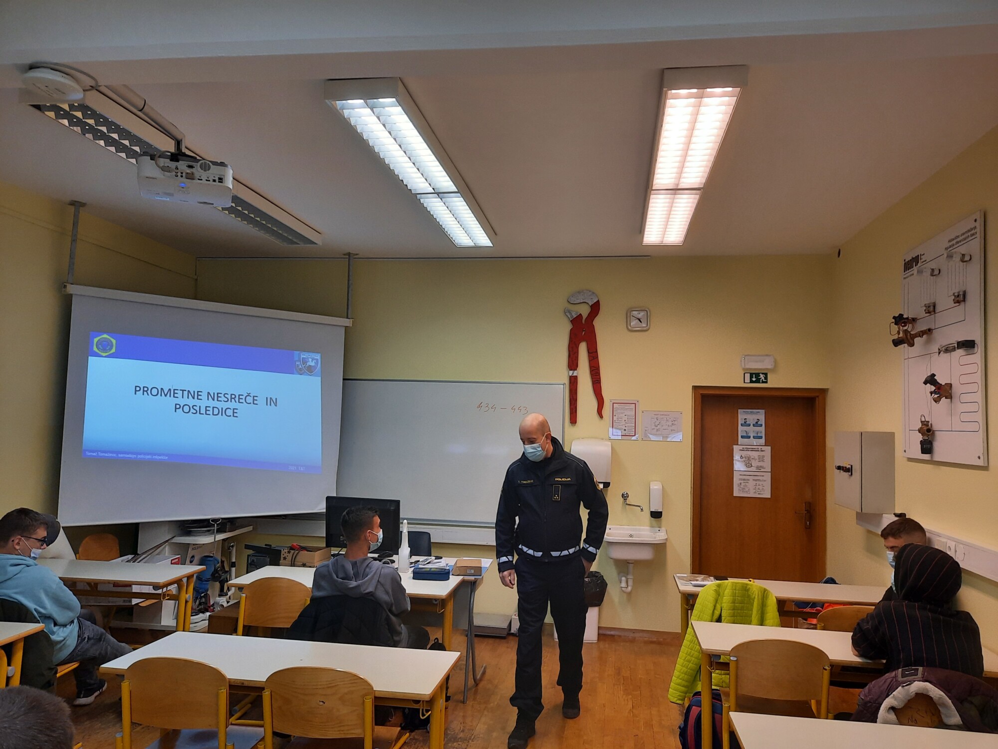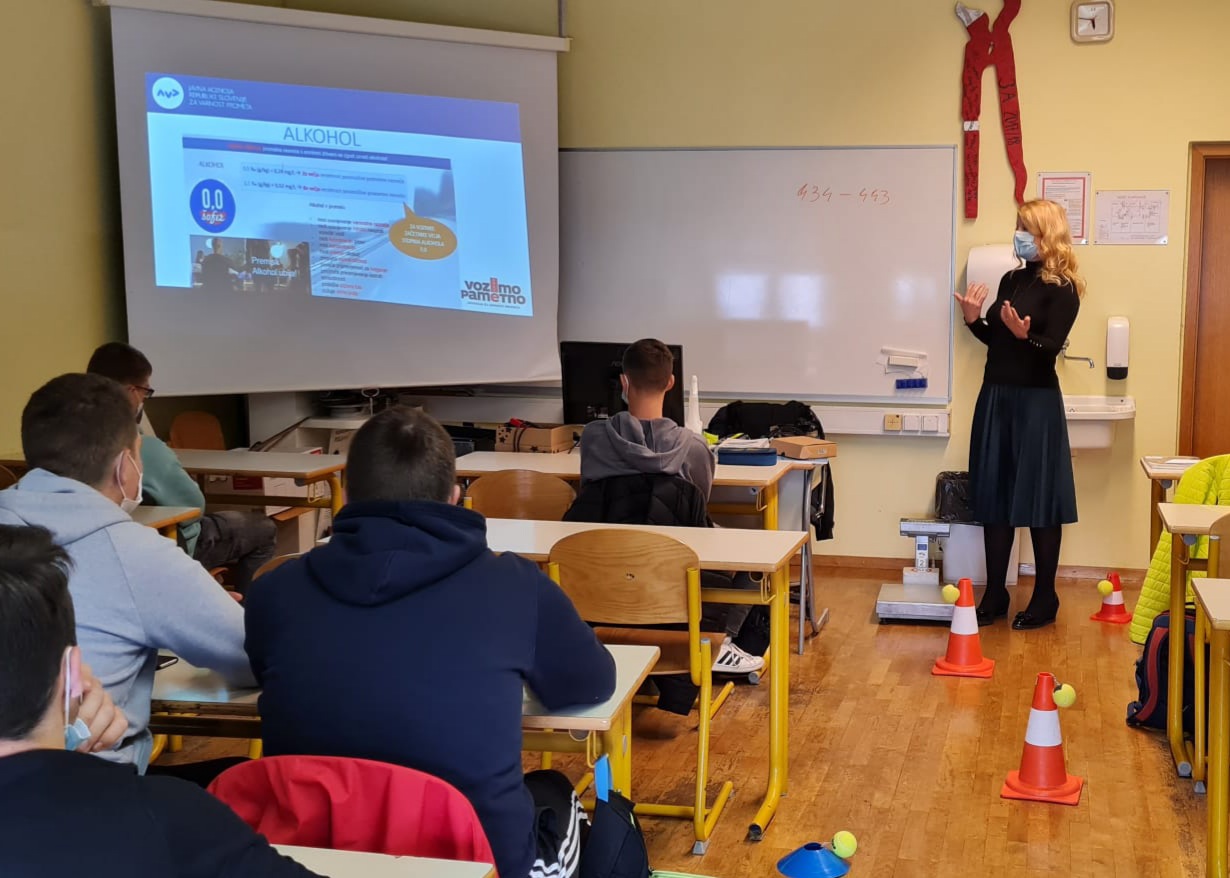 (Domžale, 10. november 2021) Agencija za varnost prometa je v sodelovanju s Policijo danes izvedla dve delavnici Vozimo pametno na Srednji šoli Domžale, za program inštalater strojnih inštalacij in avtoserviser/avtomehanik. Dragica Sternad Pražnikar je v imenu agencije predstavila zadnje podatke o posledicah, ki jih prinaša zloraba alkohola v prometu in opozorila na preventivno akcijo, ki poteka trenutno. Tomaž Tomaževic s Policije pa je predstavil posledice prometnih nesreč pod vplivom alkohola. Delavnice so potekale ob izpolnjevanju pogojev PCT ter skladno s priporočili NIJZ.