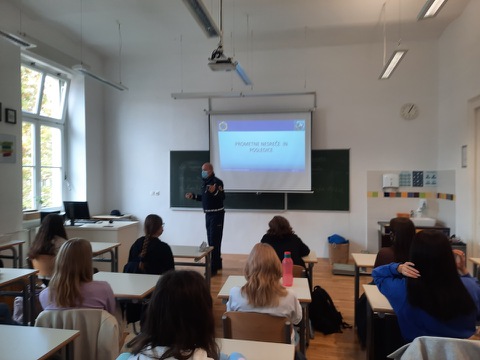 (Ljubljana, 27. september 2021) V ponedeljek, 27. septembra je Dragica Sternad Pražnikar z Agencije za varnost prometa skupaj s predstavnikom Policijske uprave Ljubljana Tomažem Tomaževicem nadaljevala z izvedbo delavnic Vozimo pametno. Tokrat so se s prvimi letniki Gimnazije Ledina pogovorili o številnih pasteh neprilagojene vožnje, uporabe mobilnega telefona in vinjenosti v prometu.