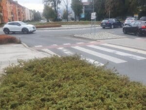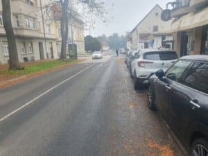 Potencialno spolzke tramvajske tirnice – še posebej, če jih prečkamo pod ostrim kotom.