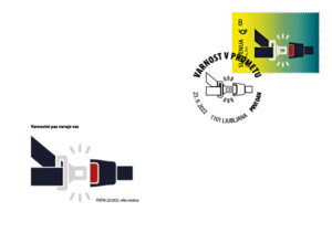 (Ljubljana, 22. septembra 2022) Pošta Slovenije bo jutri, 23. septembra 2022, izdala prvo v novi seriji znamk Varnost v prometu, ki bodo izšle v petih zaporednih letih. Agencija za varnost prometa je z veseljem pristopila k tovrstni obliki promocije prometne varnosti, s katero želi skupaj s Pošto Slovenije ozaveščati o pomenu prometne varnosti za vse udeležence. Prva znamka, ki izide jutri, bo opozarjala na pomembnost uporabe varnostnega pasu, izšla pa bo v poli s 25 znamkami in z nominalo B. V naslednjih štirih letih bodo izšle znamke, ki javnost opozarjajo na varnost pešcev (Bodi viden, bodi previden!), varno vožnjo brez mobilnega telefona, varnost kolesarjev ter pravilno vožnjo po avtocestah (Vozi desno, prehitevaj levo).