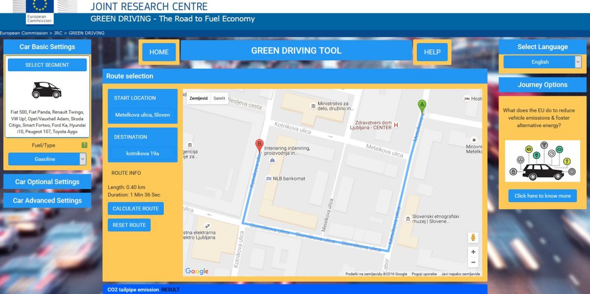 Skupno raziskovalno središče (JRC – Joint Research Centre) je razvilo novo spletno orodje Green Driving Tool s katerim lahko merite stroške porabljenega goriva in emisij ogljikovega dioksida vozila, ki ga vozite.