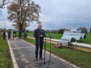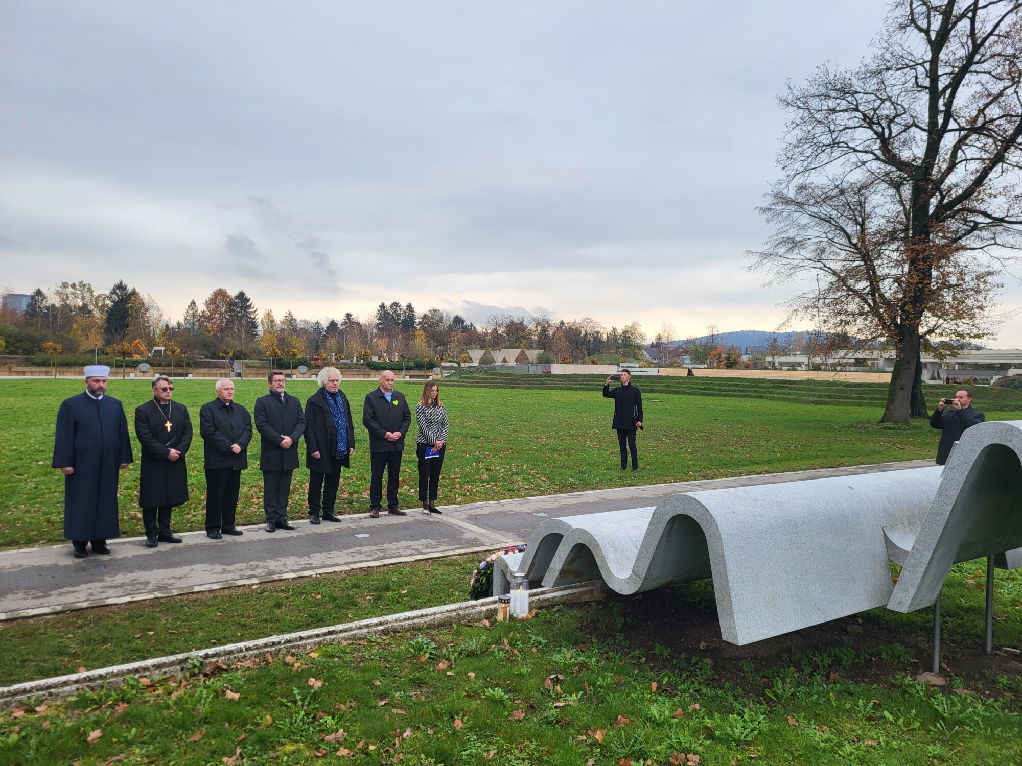 (Ljubljana, 17. november 2022) Na Novih ljubljanskih Žalah je danes potekala spominska slovesnost Zavoda Varna pot ob Svetovnem dnevu spomina na žrtve prometnih nesreč s polaganjem venca, na kateri so imeli nagovore predsednik Zavoda Varna pot Robert Štaba, arhitekt in avtor spomenika Marko Mušič, v. d. direktorja Javne agencije za varnost prometa Simona Felser, državni sekretar na ministrstvu za notranje zadeve dr. Branko Lobnikar, škof Evangeličanske cerkve v Sloveniji Leon Novak, imam Islamske skupnosti v RS Nevres Mustafić, namestnik muftija Nevzeta Porića ter ljubljanski nadškof in metropolit Stanislav Zore.