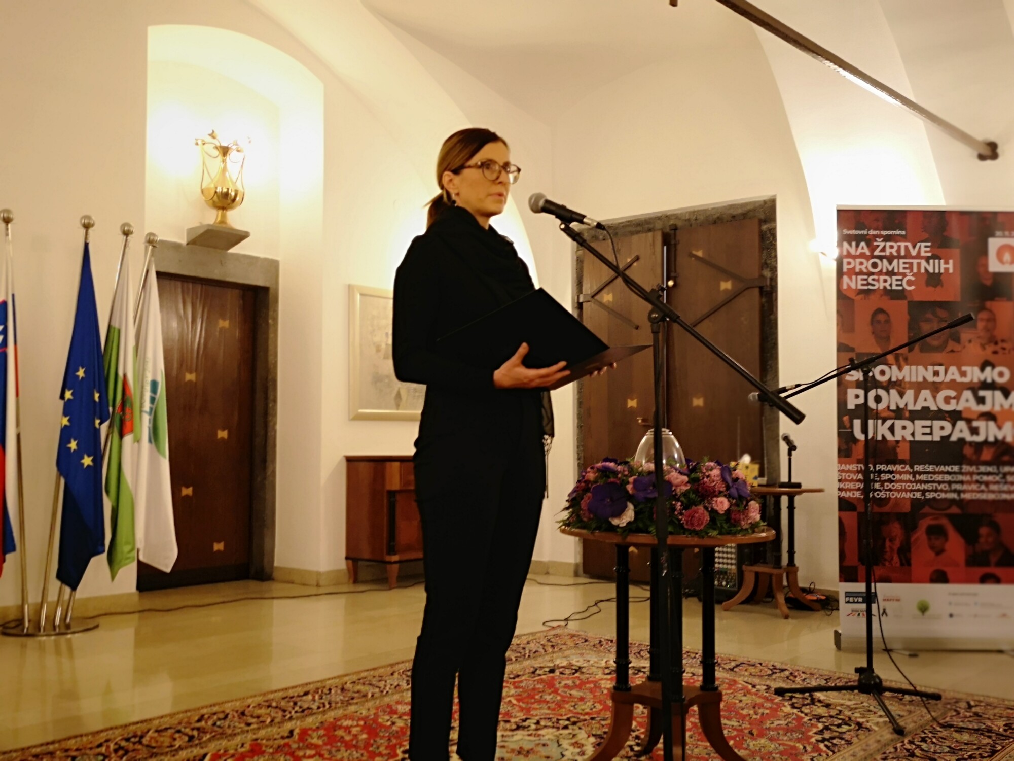 (Ljubljana, 19. novembra 2022) V Rdeči dvorani Mestne občine Ljubljana je 16. leto zapored potekala osrednja svečana prireditev v spomin na vse tragično preminule in poškodovane v prometnih nesrečah. Osrednji govorec je bil predsednik Vlade Republike Slovenije dr. Robert Golob, zbrane so nagovorili tudi v. d. direktorja Agencije za varnost prometa mag. Simona Felser, državna sekretarka Ministrstva za zdravje Azra Herceg in predsednik Zavoda Varna pot Robert Štaba. Kulturni program so izvedli učenci OŠ Riharda Jakopiča ter Adi Smolar.