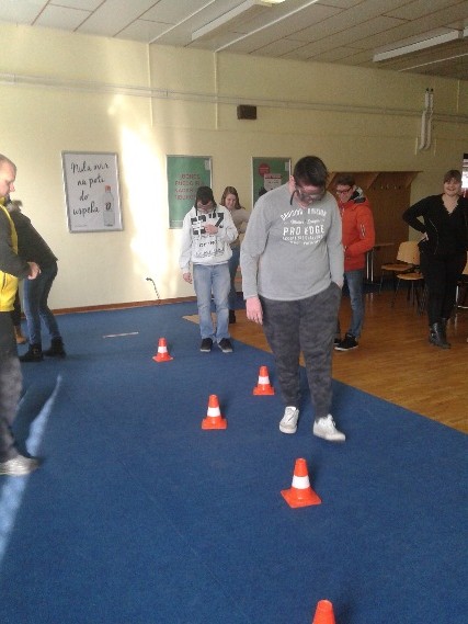mladi3Predstavnici Rdečega križa iz Gornje Radgone, Davorka Makovec in Brigita Sterniša, sta prikazali postopek oživljanja in uporabe AED, Tomaž Tomaževic iz PU Kranj pa je prisotnim na podlagi izkušenj prikazal, kakšne so potencialne posledice nepravilnega obnašanja v prometu. V drugem delu smo dijake skušali spodbuditi k razmišljanju glede vožnje pod vplivom alkohola, uporabe mobitela, neuporabe varnostnega pasu in prevelikih hitrosti. Prav tako so lahko sami s pomočjo alkoholnih očal poizkusili, kakšno je zaznavanje okolice, če si pod vplivom alkohola in kakšna je njihova naletna teža pri različnih hitrostih ter kaj to pomeni.