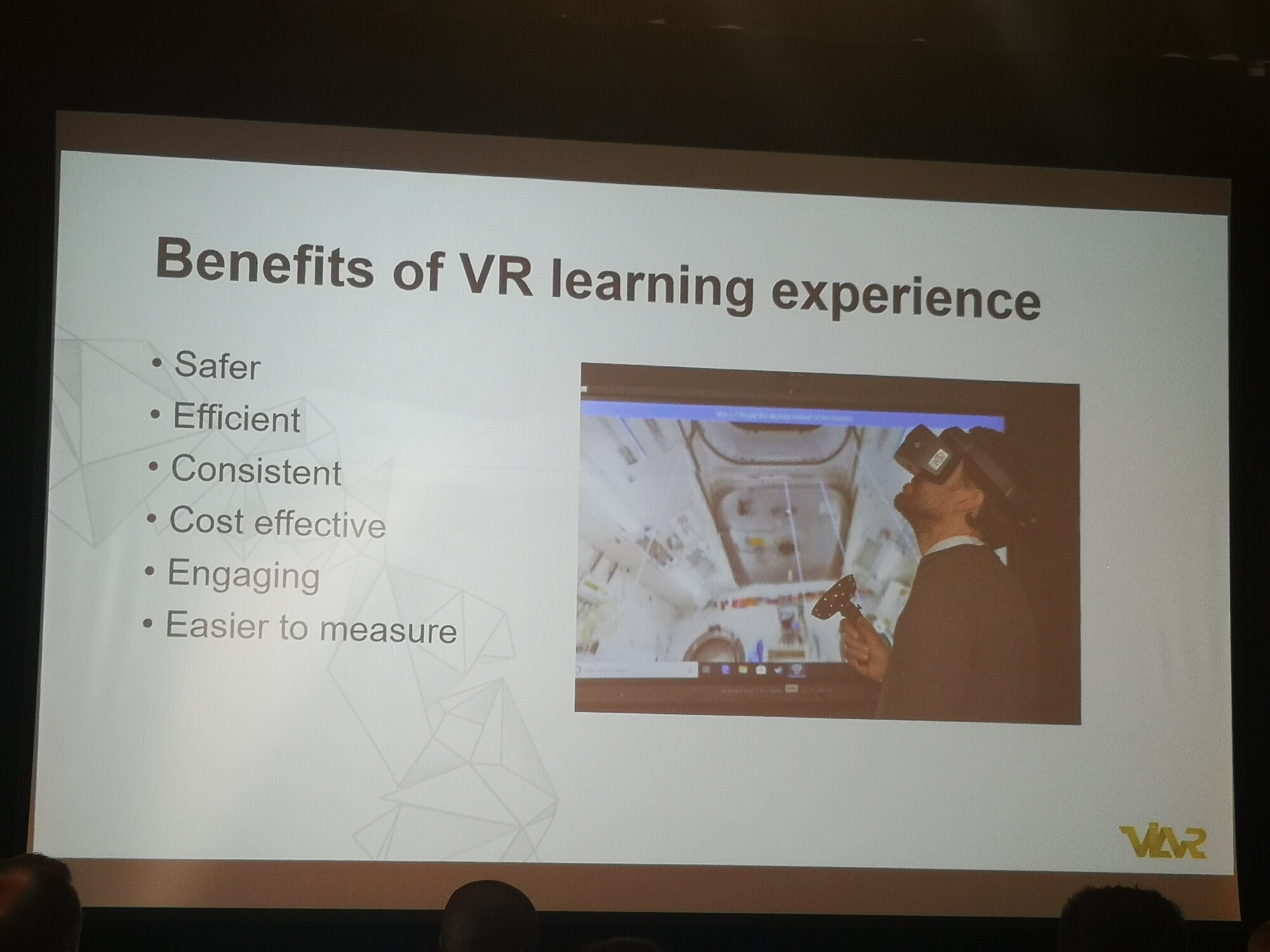 Vsebina dogodka je bila zasnovana tako, da je široka paleta strokovnjakov, ki že aktivno uporabljajo ali razvijajo VR, predstavila izobraževalno delo in prikazala najrazličnejše praktične elemente priprave in uporabe VR. Program je izvedlo 18 govornikov iz najrazličnejših okolij zasebnega in javnega sektorja, tudi dva govorca iz Slovenije, natančneje iz globalno prisotnega podjetja VIAR. Poleg tega je bilo udeležencem na voljo ducat razstavljavcev, kjer so se lahko povsem praktično seznanili s tehnologijami in jih preizkusili.