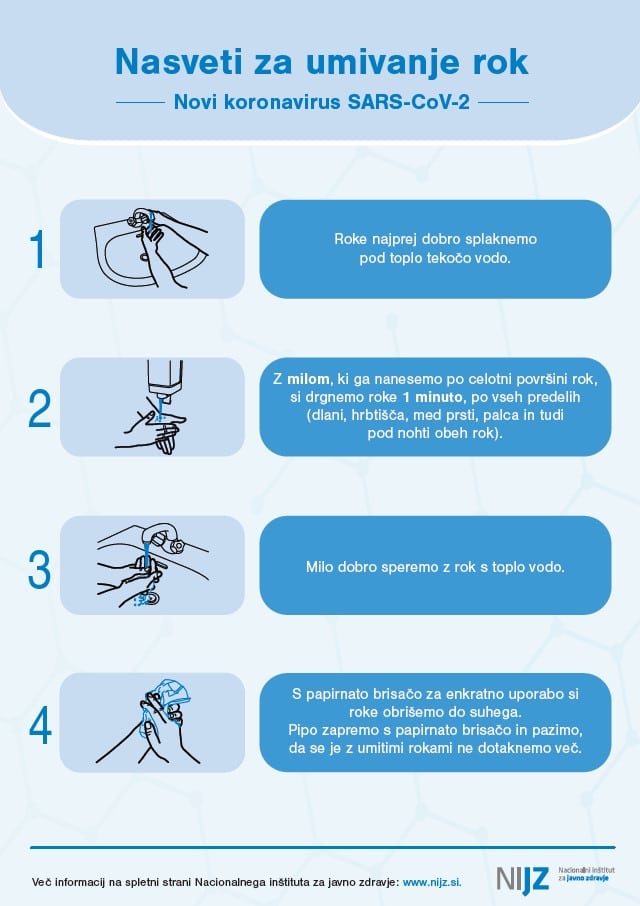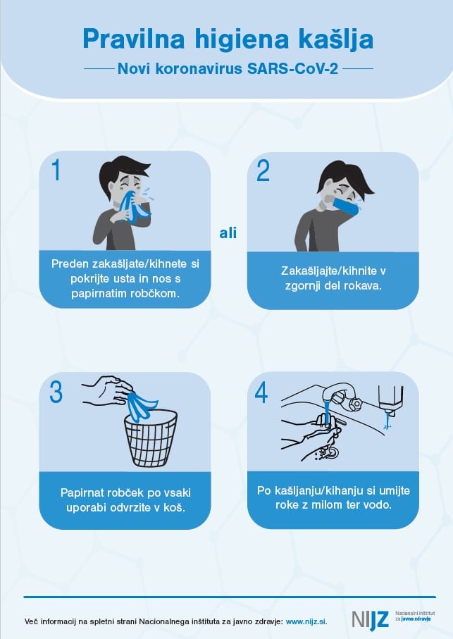 S takšnimi ukrepi boste pripomogli k preprečevanju širjenja okužb dihal. Več informacij v zvezi s tem lahko dobite tudi na spletni strani Nacionalnega inštituta za javno zdravje: www.nijz.si.