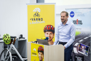 (Ljubljana, 16. maj 2023) Agencija za varnost prometa, Policija, Ministrstvo za okolje, podnebje in energijo ter projekt Varno na kolesu, so ob začetku sedmega Globalnega tedna varnosti cestnega prometa, ki poteka pod okriljem Združenih narodov ter pred začetkom nacionalne preventivne akcije za večjo varnost kolesarjev, v Ljubljani izvedli medijski dogodek za ozaveščanje vseh udeležencev v prometu o varnosti kolesarjev. Sodelovali so otroci petih razredov OŠ Ferda Vesela iz Šentvida pri Stični, ki so se preizkušali na poligonu varne vožnje in spoznavali pomen zaščitne čelade ter drugih prvin varnega kolesarjenja. Letošnja tema je trajnostna mobilnost s sloganom #RethinkMobility. V Združenih narodih ob letošnjem globalnem tednu varnosti cestnega prometa poudarjajo, da mora biti varnost v središču premisleka o mobilnosti. Podatki kažejo, da je bilo v letu 2022 v Sloveniji 1.484 prometnih nesreč z udeležbo kolesarjev, od tega je 876 kolesarjev ali 59 % samih povzročilo prometno nesrečo. Število prometnih nesreč se je v primerjavi z letom 2021 povečalo za 9 %, med vzroki izstopata neprilagojena hitrost in neupoštevanje pravila o prednosti. Umrlo je 11 kolesarjev, 241 je bilo hudo telesno poškodovanih in 1.057 lažje telesno poškodovanih. Delež umrlih kolesarjev je v letu 2022 znašal 12,9 % med vsemi žrtvami prometnih nesreč, kar je največ v obdobju zadnjih petih let. V obdobju zadnjih petih let je delež hudo telesno poškodovanih med vsemi udeleženci v prometu najvišji prav med kolesarji in znaša 27 %. V zadnjih petih letih 63 % umrlih kolesarjev ni uporabljalo kolesarske čelade. Kljub temu, da je uporaba zaščitne kolesarske čelade obvezna le do 18. leta, svetujemo uporabo čelade vsem kolesarjem. Med vožnjo s kolesom je prepovedano uporabljati mobilni telefon, lani pa je bilo kar 907 kršitev tovrstnih, kar pomeni povečanje za 36 % v primerjavi z letom 2021. Voznike motornih vozil Agencija in Policija posebej opozarjata, da je od leta 2021 predpisana bočna razdalja pri prehitevanju kolesarjev, voznikov lahkih motornih vozil in voznikov mopedov, ki znaša najmanj 1,5 m. To je še toliko bolj pomembno, kadar kolesarje prehitevajo večja vozila, kot so avtobusi ali tovorna vozila. Tesno prehitevanje je ne le prepovedano temveč za kolesarje izjemno nevarno!
