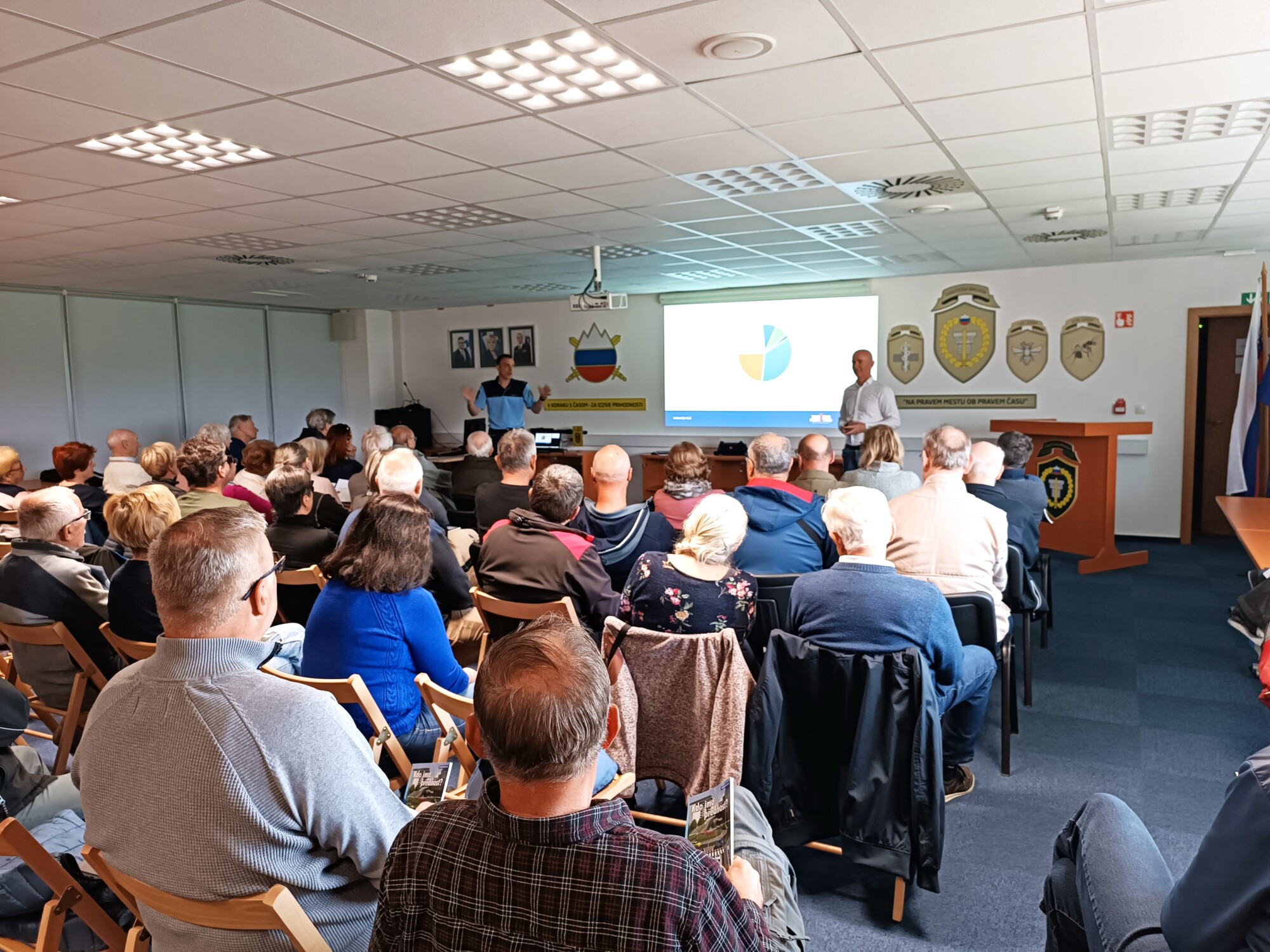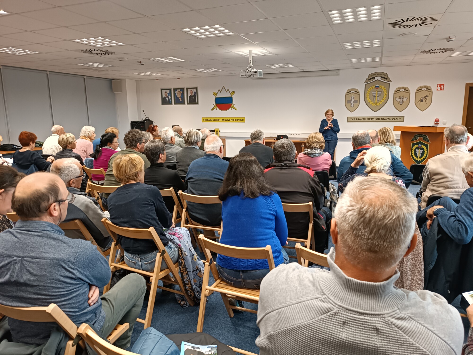 V okviru maratona Projekta Sožitje se v polni dvorani Vojašnice Petra Petriča Kranj srečali z več kot 50 upokojenkami in upokojenci MORS-a Kranj, starejšimi udeleženci v prometu.