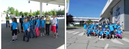 Prihod otrok pred Revoz in skupinsko fotografiranje