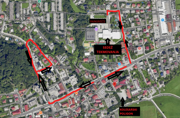 Proga ocenjevalne vožnje: Tekmovalci bodo štartali iz dvorišča OŠ Maksa Pečarja (štartno-ciljni prostor) naravnost, kjer bodo zavili desno do Ceste Ceneta Štuparja in nadaljevali naravnost do Dunajske ceste. Potem bodo zavili desno in nadaljevali po Dunajski do drugega križišča s Cesto Ceneta Štuparja in zavili desno na omenjeno cesto. Potem bodo nadaljevali do križišča s Primožičevo ulico, kjer bodo zavili desno in takoj levo ter nadaljevali do križišča s Cesto Ceneta Štuparja, kjer bodo zavili levo in takoj spet levo ter nadaljevali po isti trasi do OŠ Maksa Pečarja.