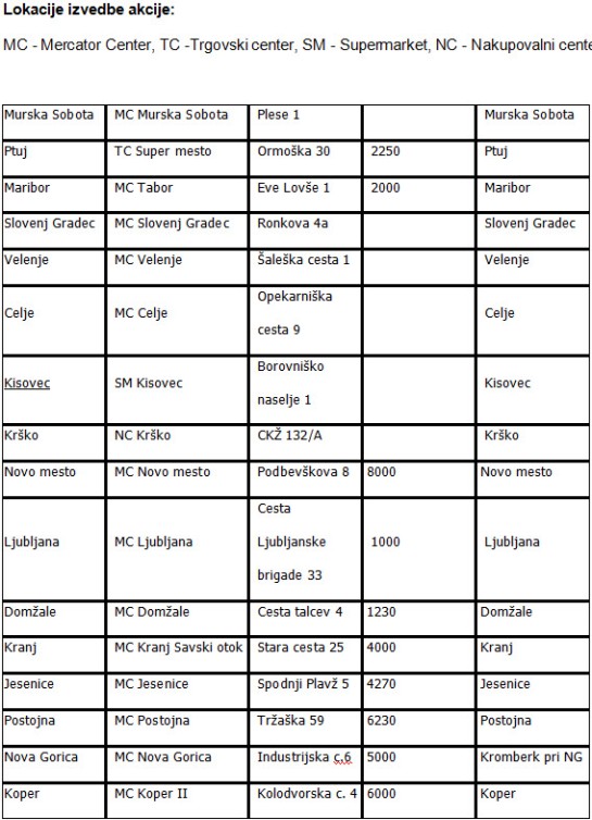 Dogajanje poteka na zunanji stojnici ob vhodu v Mercator-center in na parkirišču Mercatorja.