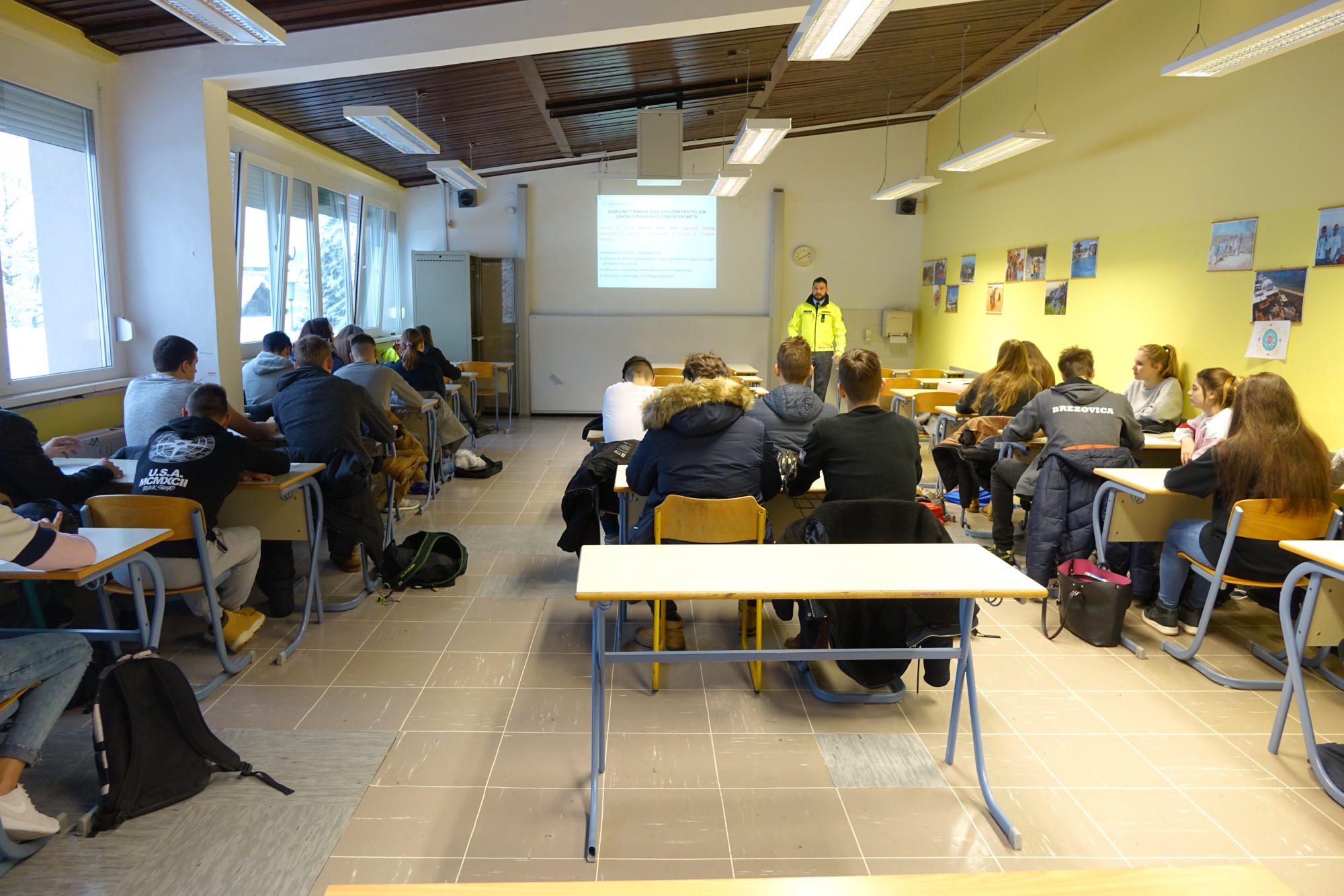 V sredo, 7. februarja 2018, smo izvedli delavnice Vozimo pametno za 2. letnike dijakov na Gimnaziji Šiška. Dijaki, ki so bili razdeljeni v tri skupine so se udeležili različnih predavanj oziroma delavnic o prometni varnosti. Cilj delavnic Vozimo pametno je, da se srednješolci še pred oziroma v času opravljanja vozniškega izpita poučijo in se zamislijo o odgovornosti, ki jo bodo imeli za volanom. Poleg predstavnikov Agencije za varnost prometa, so dijaki poslušali tudi predavanje policista, ki jim je predstavil prav ta vidik odgovornosti in posledic nepremišljenega ravnanja na cestah ter z osebnimi izkušnjami poskušal približati problematiko ogroženosti mladih v cestnem prometu. Na delavnicah Vozimo pametno je sodeloval tudi Zavod Varna pot, ki deluje na področju pomoči žrtvam prometnih nesreč. Dijaki so lahko preizkusili tudi preventivne naprave za prikaz naletne teže pri različnih hitrostih in izračun reakcijskega časa ter preizkus očal za prikaz vinjenosti oziroma vpliva drog na vidno zaznavanje. Odzivi dijakov so bili zelo pozitivni in po njihovem mnenju so delavnice koristne ter jih spodbudijo k razmišljanju o pravilnem ravnanju v prometu. Dijaki tudi: