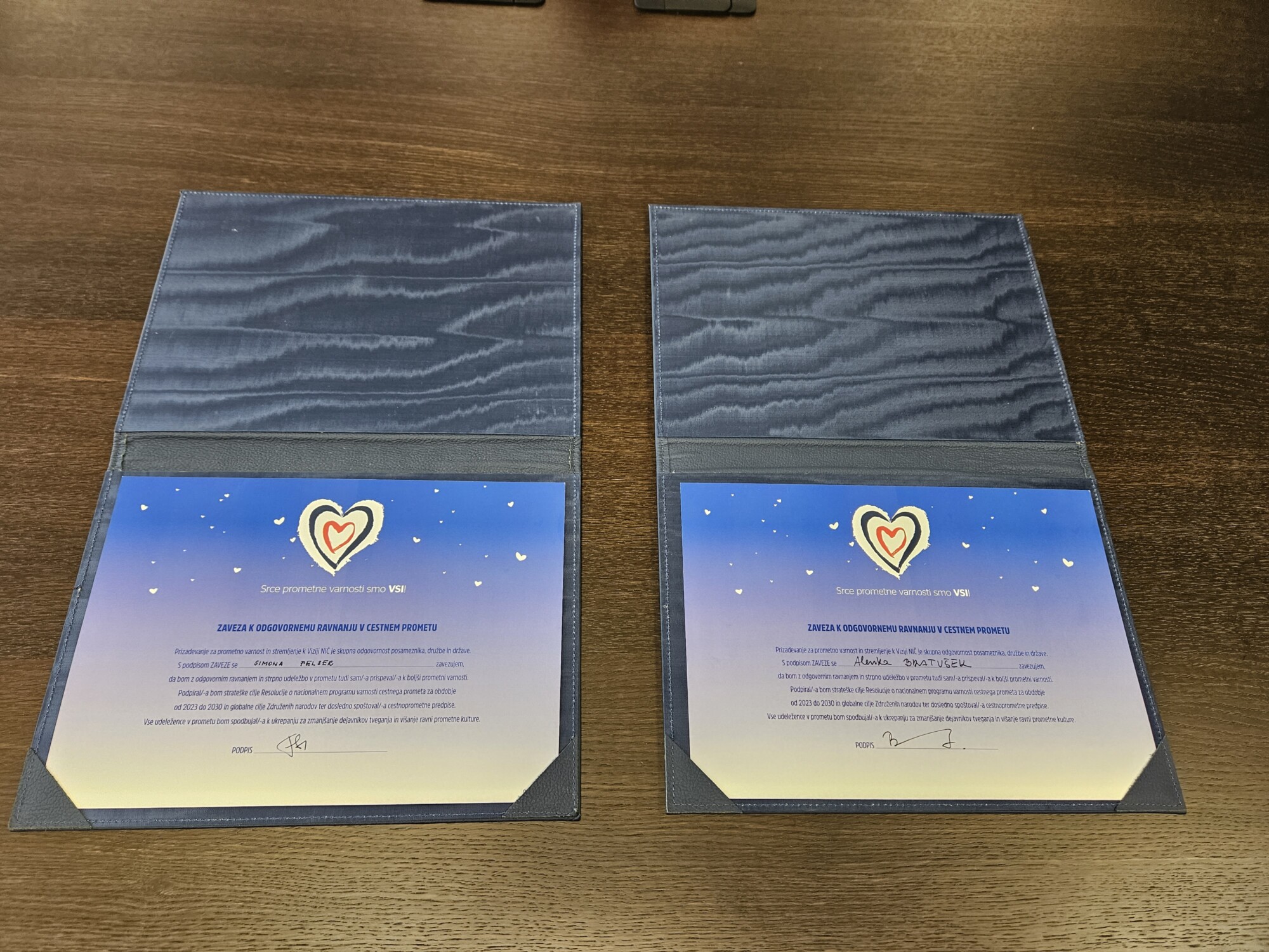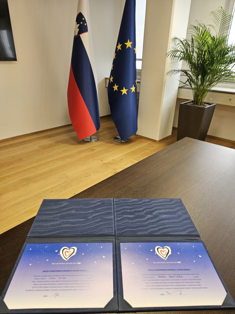 (Ljubljana, 23. oktober 2023) Ministrica za infrastrukturo mag. Alenka Bratušek in mag. Simona Felser, v. d. direktorja Agencije RS za varnost prometa sta danes, kot prvi podpisnici, podpisali Zavezo k odgovornemu ravnanju v cestnem prometu. Prizadevanje za prometno varnost in Vizijo NIČ je skupna odgovornost posameznika, družbe in države.