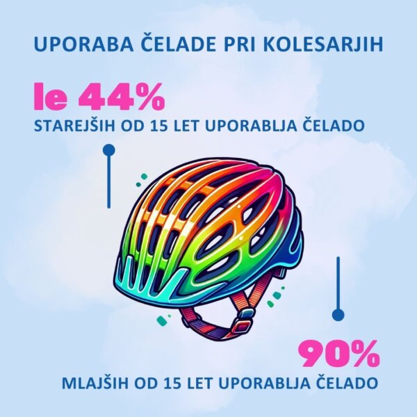 V vsakem primeru pa za kolesarje tudi ali še posebej pozimi velja – vedno in dosledno uporabljajte homologirano varnostno čelado ustrezne velikosti, ki jo pozimi lahko kombinirate z ustrezno podkapo. Po zadnji raziskavi Trendline, ki jo je sofinancirala tudi EU in so jo izvedli v 29 državah članicah EU (vključno s 4 državami kot opazovalkami), torej tudi pri nas, so pri uporabi čelad med kolesarji prišli do zanimivih rezultatov. V Sloveniji uporablja čelado skoraj polovica kolesarjev (47 odstotkov), pri čemer so uporabniki e-koles pri tem bolj dosledni, saj je takih že 68 odstotkov.